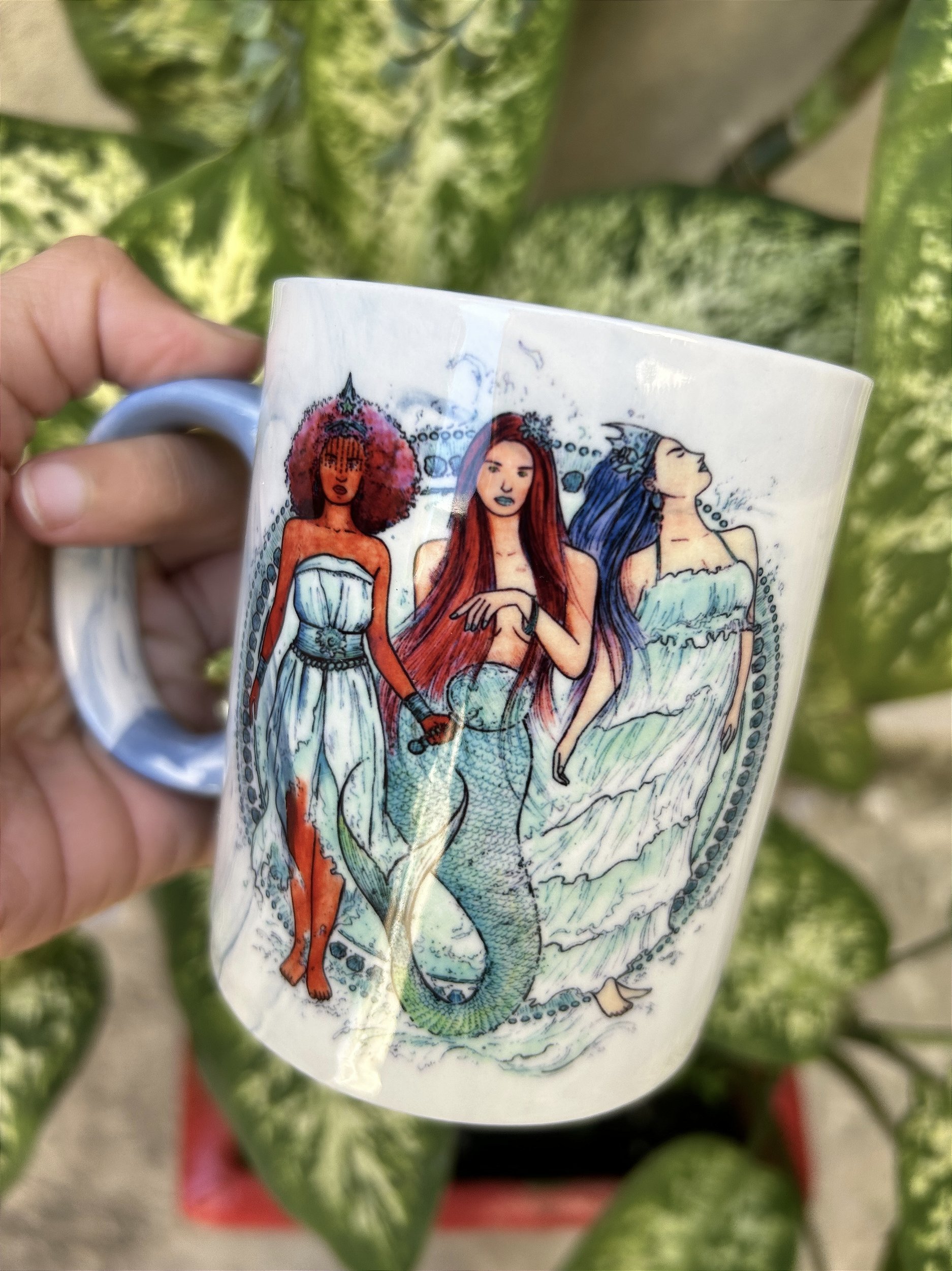 Novo modelo de caneca de Iemanjá Rainha do Mar. Temos caneca em marmorizada manchada na cor azul e a branca, ambas importada, refinada de alta qualidade. Estampada com nossa arte exclusiva da nossa marca. Escolha o modelo na variação, os preços são unitários e variam de acordo ao modelo.