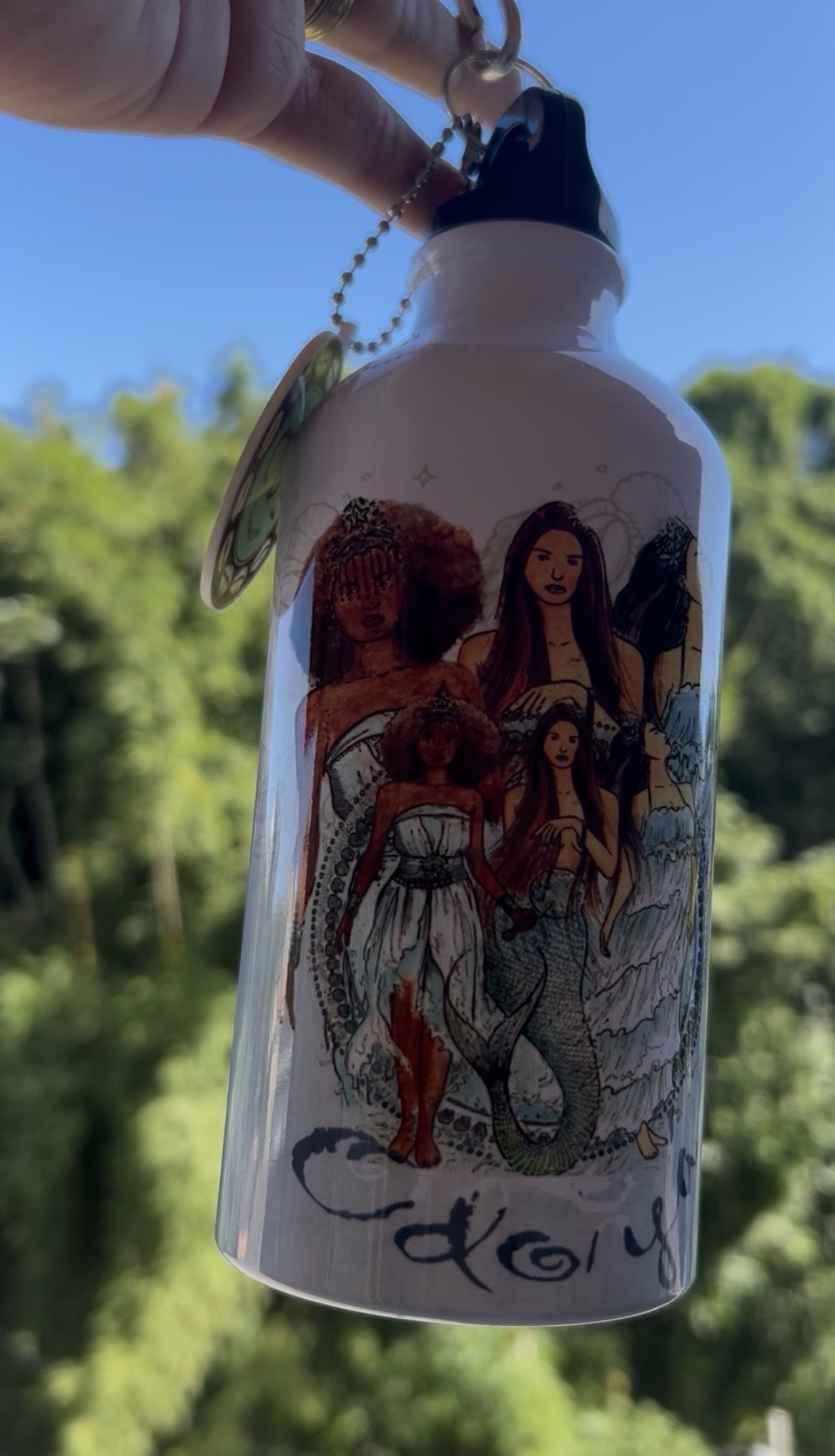Tudo é no tempo de Orixá e assim o nosso mais novo produto - Squeeze de Iemanjá, com nossa arte exclusiva é uma garrafinha de 500ml de alumínio e acompanha esse lindo chaveiro da nossa marca.