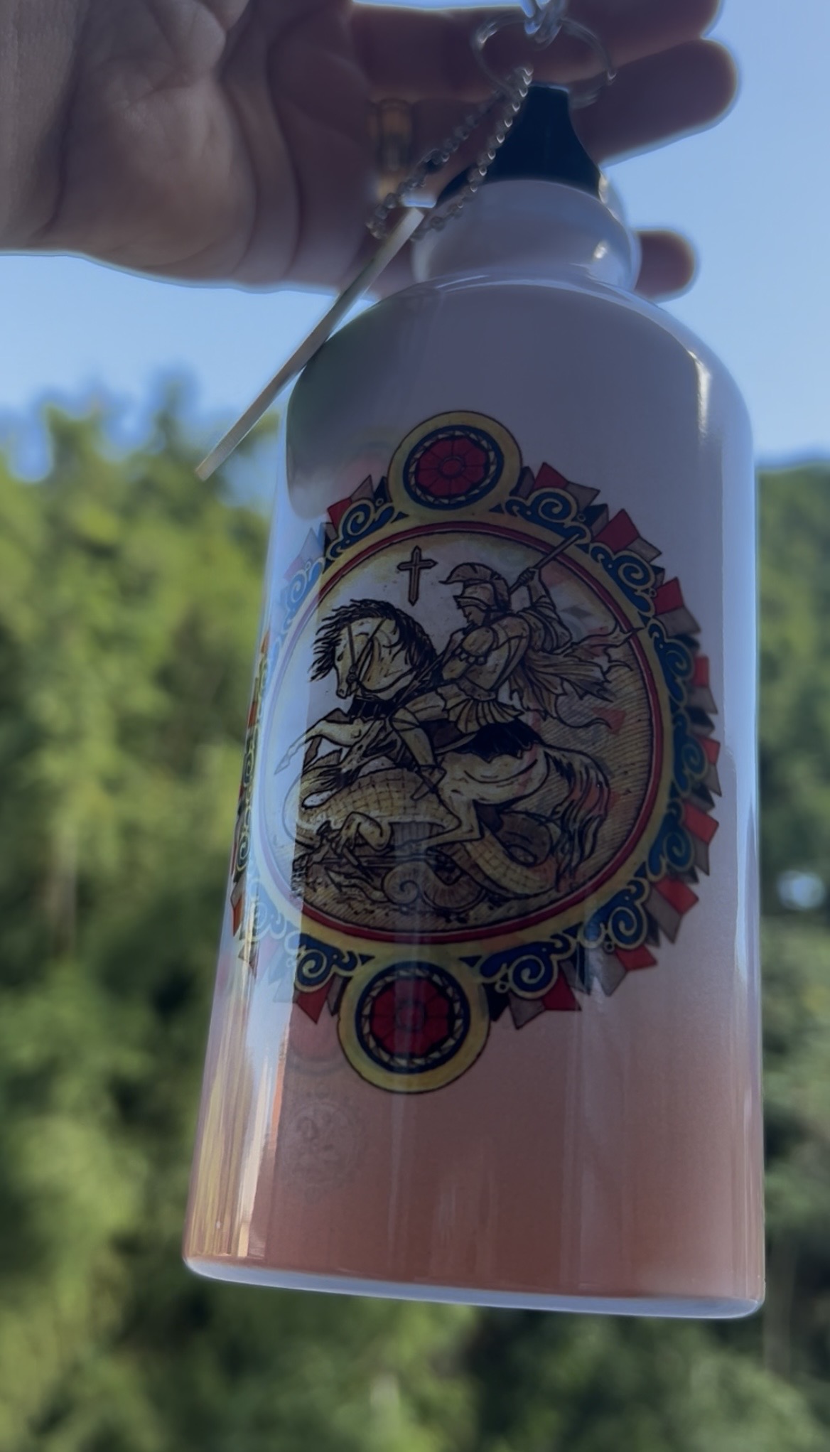 Tudo é no tempo de Orixá e assim o nosso mais novo produto - Squeeze de São Jorge, com a nossa arte exclusiva é uma garrafinha de 500ml de alumínio e acompanha esse lindo chaveiro da nossa marca.