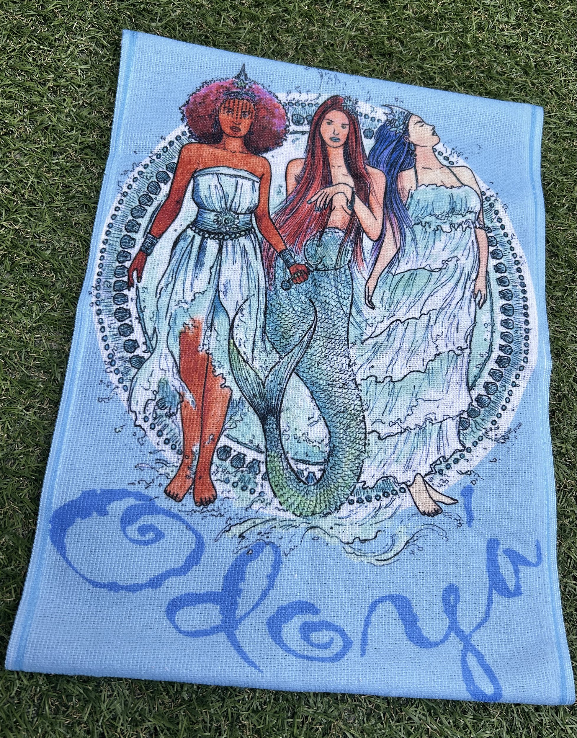 Toalhinha estampada total chegou arrasando com nossa arte exclusiva da grande Mãe Iemanjá Rainha do Mar. Foto real do produto.